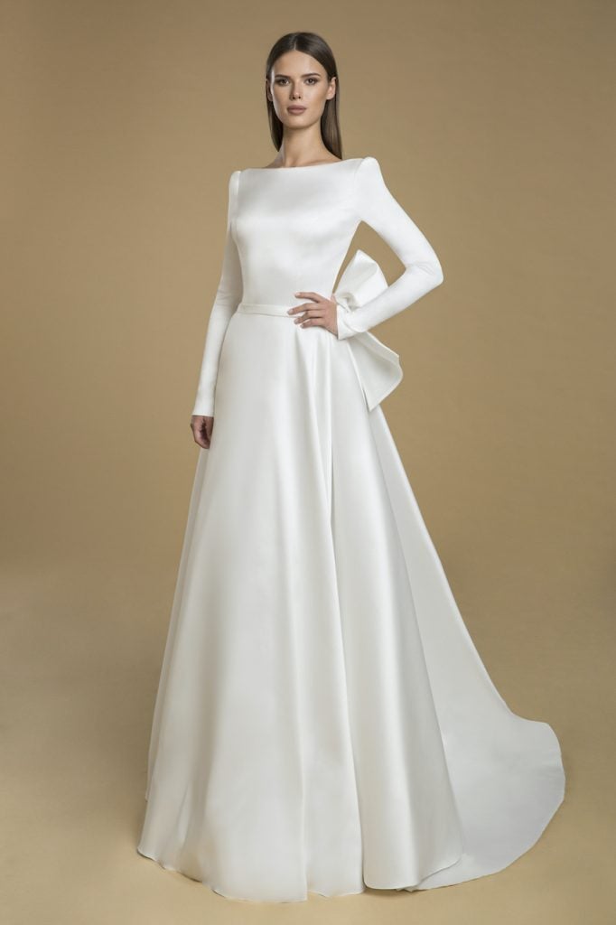 Long sleeved gowns are totally modern.