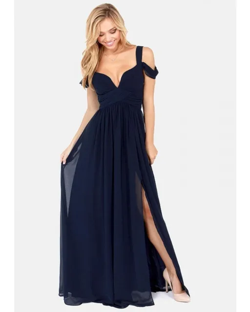 Asos design high drape neck maxi with long sleeves in navy. For instant drama, we recommend our long dresses with sleeves for wedding guests. Navy blue beaded long sleeve gown.